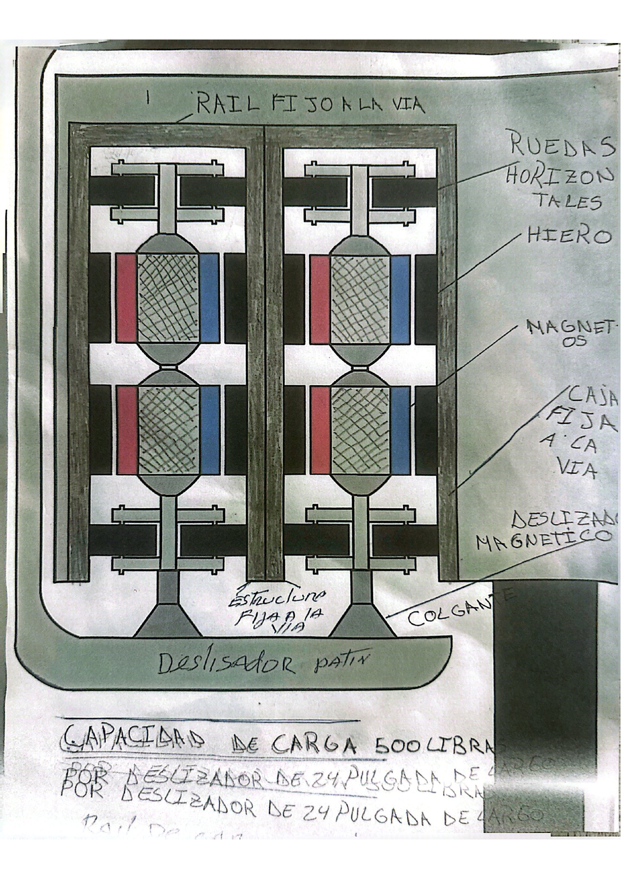 - Un zapato/deslizador magnético estructurado verticalmente.