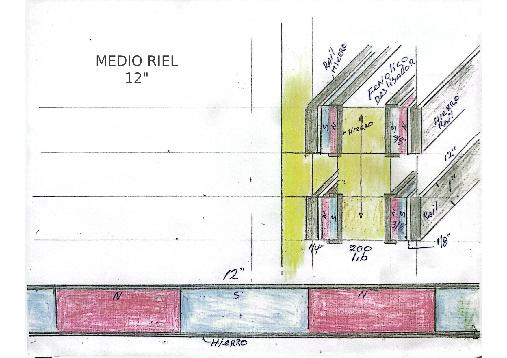 - Un riel central de cobre activado por corrientes de Foucault.